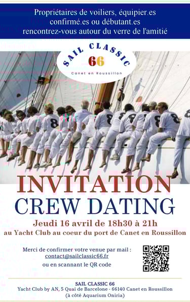 Vous êtes propriétaire d'un voilier, vous êtes équipier ou équipière et avez envie de naviguer, venez faire connaissance autour d'un verre !